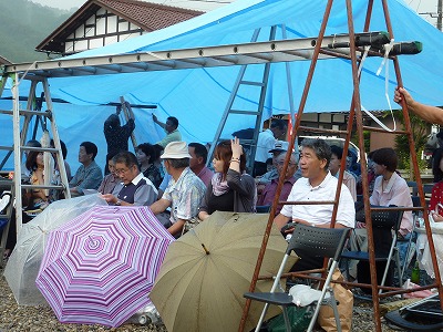 ステージは 雨風が 容赦なく吹き込んでくるようです