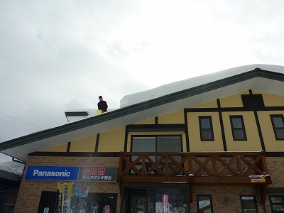 ひとりごと まるでロッジ 2011年1月22日 usagi コメントする 今のうちに ちょっと 雪おろしを~~ どう見ても ロッジの雪おろししている おっさん 電気屋とは・・・ 看板見なければ わかりませんよね(+_+) ・・・たしかに 間違えて入ってこられる方もみえますよ~~ 屋根にたまった重い雪を落とすのですが また 落とした重い雪を 運ぶのも 重労働・・ハァ[#IMAGE|S42#] 会う人 会う人が 「雪は もう~~いらんぞ~~」と 吠えています[#IMAGE|S33#]
