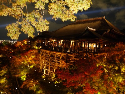 宿で夕食をすまして 雨も止んだので さて ライトアップの清水寺へ