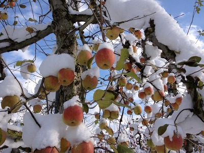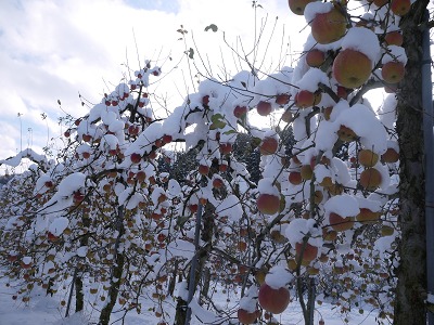 ひとりごと リンゴも寒そうです~~ 2012年12月13日 usagi コメントする 毎年の恒例 リンゴの収穫 まだ 大丈夫やろ~~と 安心していたら・・この 雪 雪 あわてて 行ってみると みごとに 雪におおわれています なんとも 寒そうな リンゴたち でも 美味しい蜜をためながら 待っててくれました~~❤ しかし 採るのも大変 リンゴを引っ張ると もれなく雪が落ちてくる仕組み(ー_ー)!! 雪だらけになりながら 笑いながらの たのしいリンゴ狩りでした♪♪