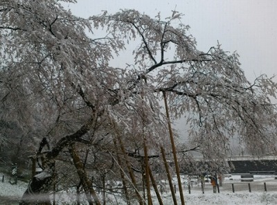寒いです 臥龍桜に雪です