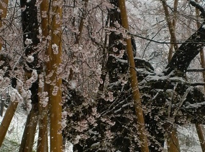 朝早くに撮っていただいたので 貴重な「雪の臥龍桜」です
