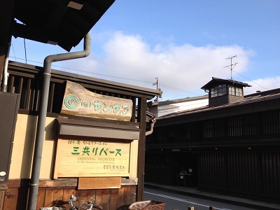 高山の観光名所の古い町並みにある「三共リバース」