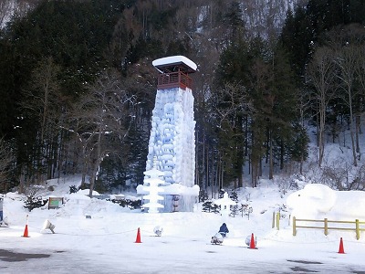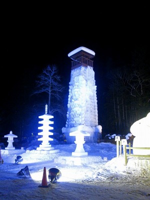 みなさんで作っていた 氷の塔