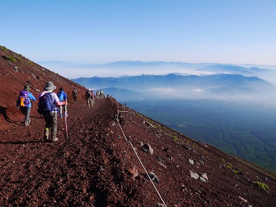 名物の富士山の渋滞を味わい 無事に 頂上に到着