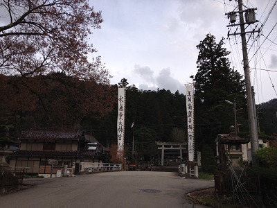 水無神社の前にも 大きな旗が立てられていましたよ
