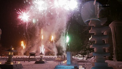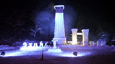 雪で作られた15mの氷の塔や 灯籠のオブジェ