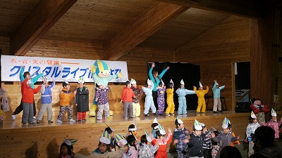 ステージでは 岐阜清流国体PRのイメージキャラクター「ミナモ君」と地元の園児たちです