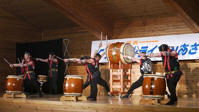 地元の朝日太鼓のみなさん 力強い音が 響いてきそうですね