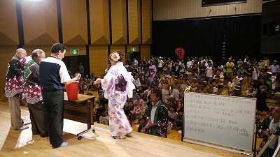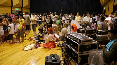 イベント 宮の夏祭り 2010年8月17日 usagi コメントする やっぱり 今年の 雨は 意地悪です なんか イベントがあるたび 雨でございます~~ そう 宮の 夏祭り当日・・朝から 雨です・・・ハァ~~ イベントの音響照明を させていただいている者としては 困る~~ てなことで 降り止まないということで 会館内での開催でした 唄あり 陣屋太鼓あり 仮装盆踊り大会あり そして 大抽選会あり 雨にもかかわらず 大勢の方が見えてうれしいです~~ そして 1等をねらって ゲゲゲの仲間も カッパも 真剣です~~[#IMAGE|S17#]