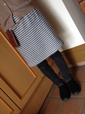 と 思うのは 今年の流行りの「ミモレスカート」が